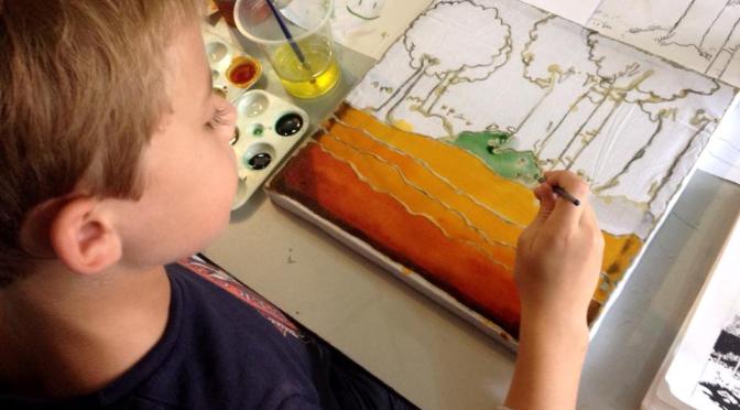 Now, simply paint the design, making the colors more or less intense depending on the amount of water added to the pigment. Rozana also showed us how to use sugar and salt to create some very cool effects.