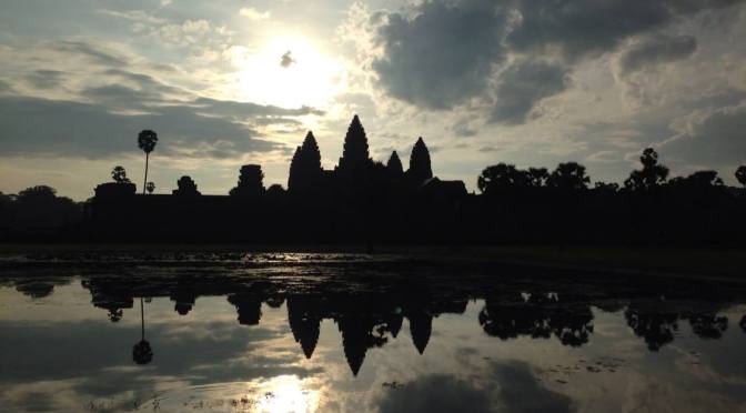 Like so many other bleary-eyed early-risers, we find ourselves standing in the dark waiting for sunrise to reveal the iconic temple of Angkor Wat. The sounds of frogs, crickets, and insects surround us. The murmuring crowd and the music playing in the background, don’t take away from the magic and the anticipation.