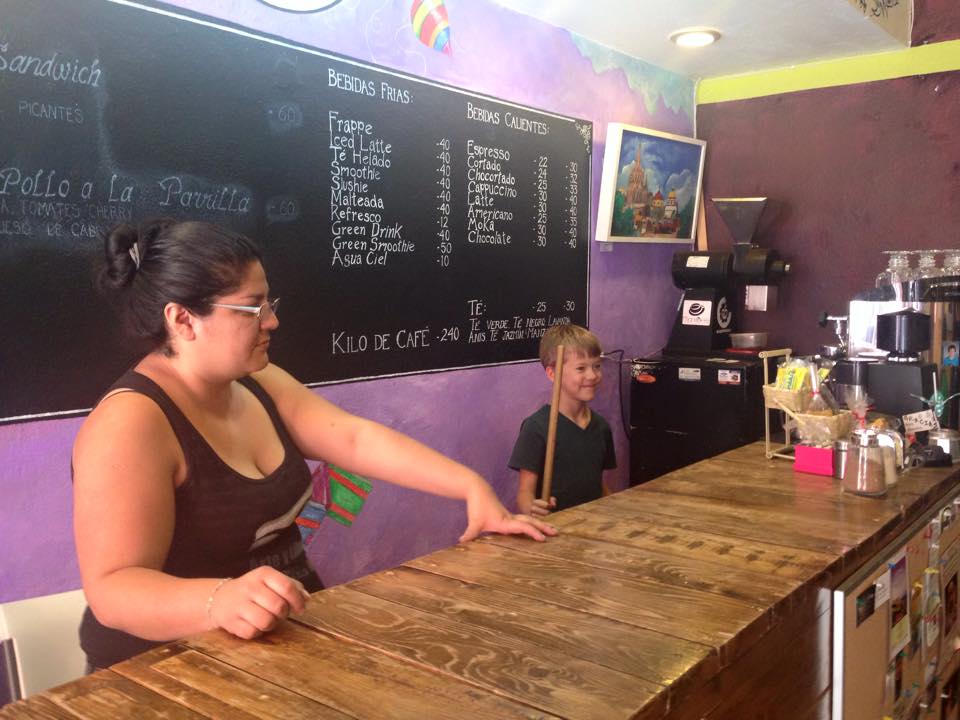 Ethan helping out at a local cafe
