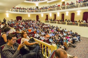 We’re gathered in the stately, historic Angela Peralta theater. The theater buzzes with the families, friends, and guests flowing into the space. The lights dim and multicolored laser lights begin to dance about the theater.Then there’s the “bass drop” and the pulsing music as the curtains open and we’re off.