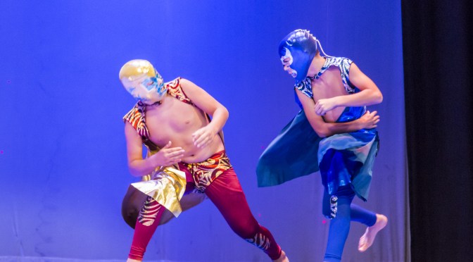 Paulina, the owner of the gym, puts on a show every year or every other year. We actually participated in a great show two years ago. Last year, for various reasons there was no show. This year, though, was Mexicanisimo. Ethan’s tricking class was going to be luchadores and do a Lucha Libre performance – the famous Mexican professional wrestling phenomenon. And he would be Blue Demon, one of the most famous luchadores of all. Over the next 6 months, they practiced and rehearsed in preparation. And since Ethan can actually dance pretty well, being flexible and in-shape and able to (mostly) keep a rhythm, he was also invited to participate in one of the dance numbers, Celebracion!. We couldn’t have been more proud or more excited. It was a lot of rehearsal, and frankly, it is amazing that Paulina and company can keep it together for so long with such grace…but they really do.